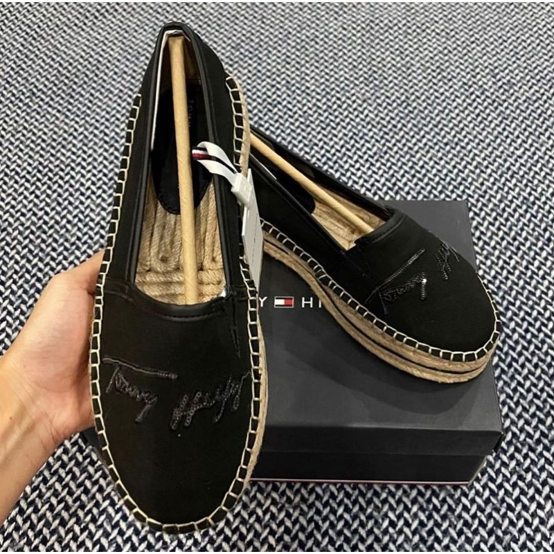 Tommy Hilfiger Women Shoes Platform Espadrille Signature Black